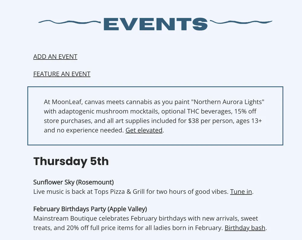 Know about an event happening in the south metro? Share it with the community and we'll review it for listing.