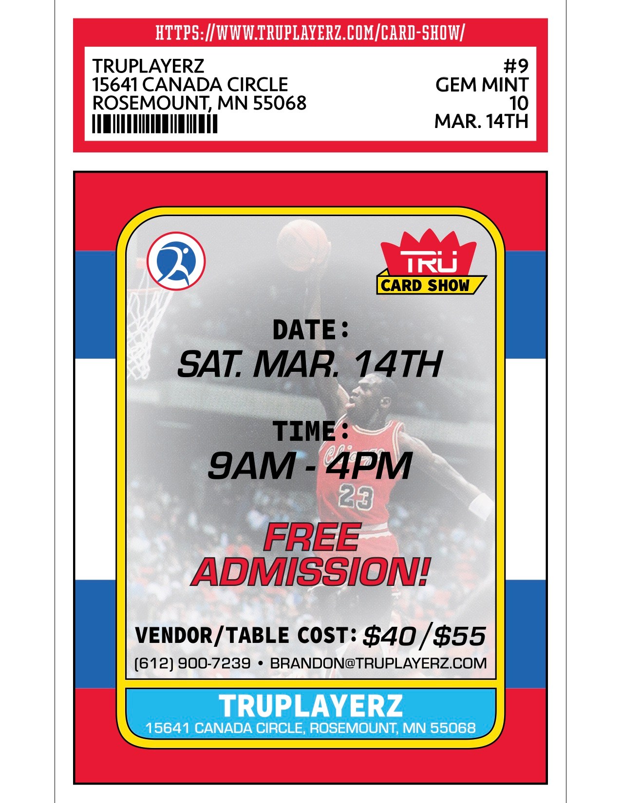 Join us for Truplayerz Card Show at Rosemount VFW, located at 15641 Canada Circle, Rosemount, MN 55068.